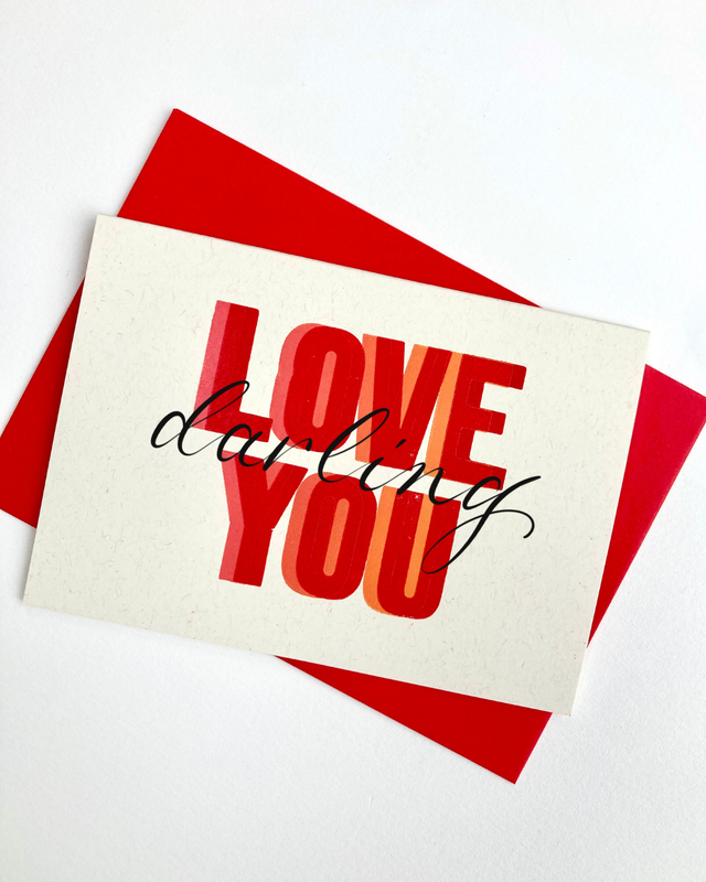Lucy from Green Machine Creative is a letterpress print maker, using traditional wooden blocks she has created this "Love You" phrase and then double printed it with an ombre effect and a red overlay. Vicky from Inviting Writing will be writing directly over Lucy's artwork with a word or two short words of yyour choice using her black brush pen.